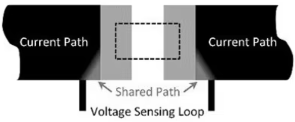 (6) By splitting the voltage-sense pads from the current-path pads, the solder joints themselves also are removed from the shared path.