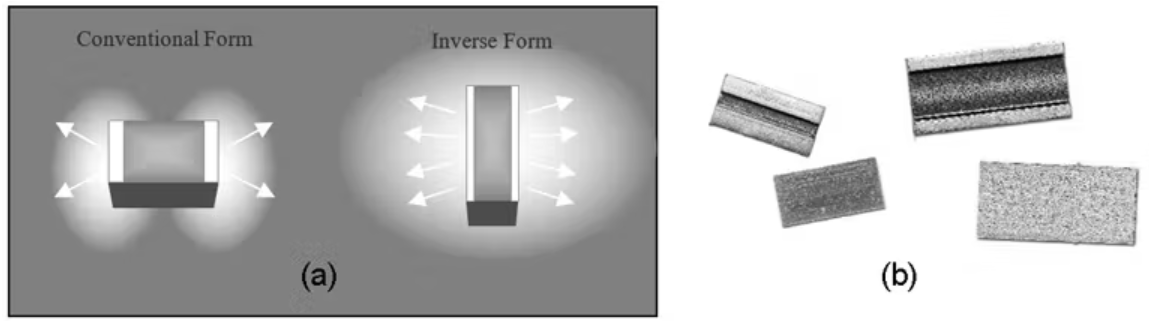 (10) The limiting factor of the internal thermal impedance may be lowered significantly by changing the orientation of the resistor. If the terminations are formed on the longer edges of the chip rather than the shorter edges, the solder joint width is approximately doubled and the maximum distance from film center to termination is approximately halved (a). TT Electronics ULR2N and ULR3N are examples of products that make use of this enhanced cooling method (b).